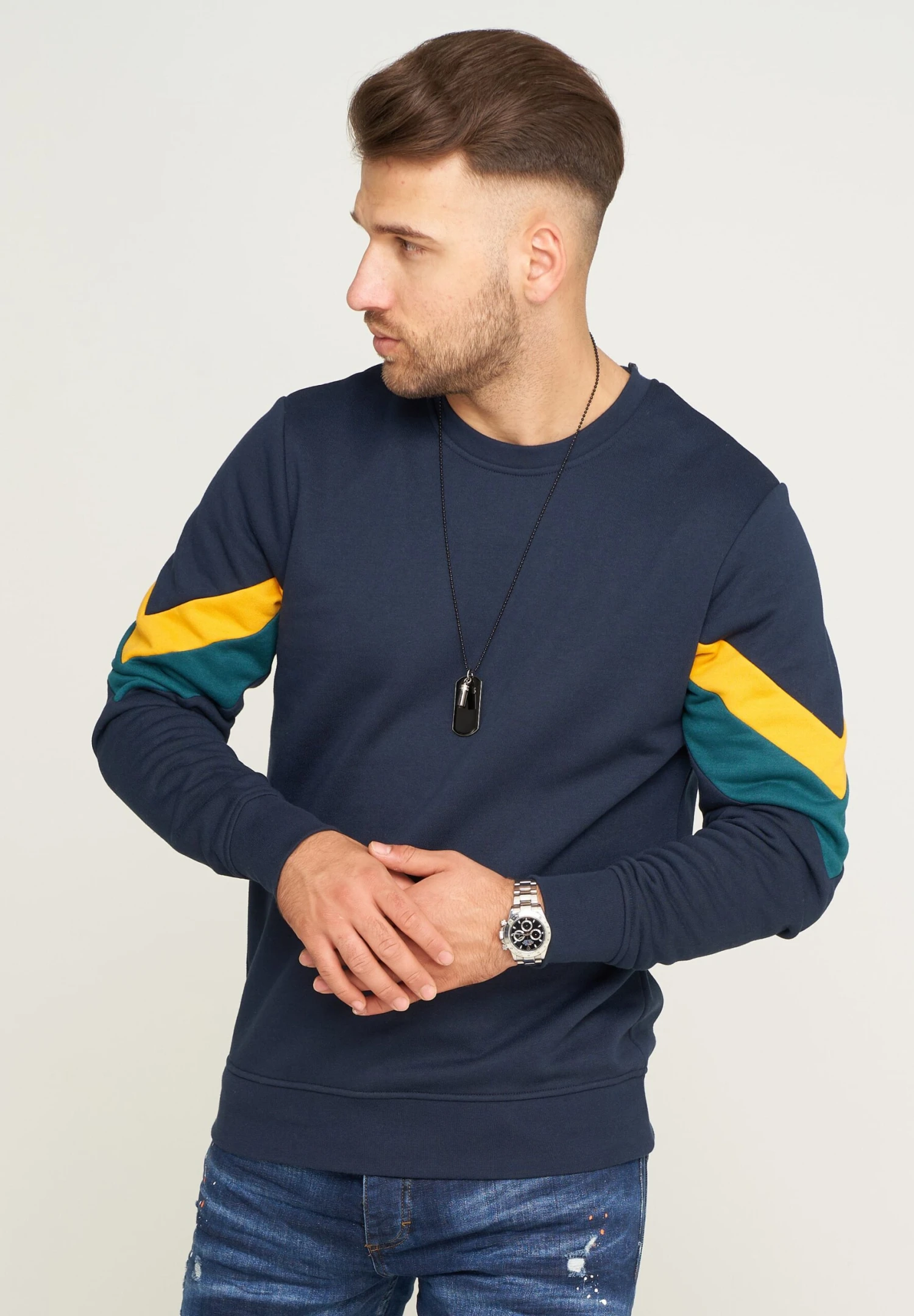 – Retro-Touch durch farbige Streifen an den Ärmeln